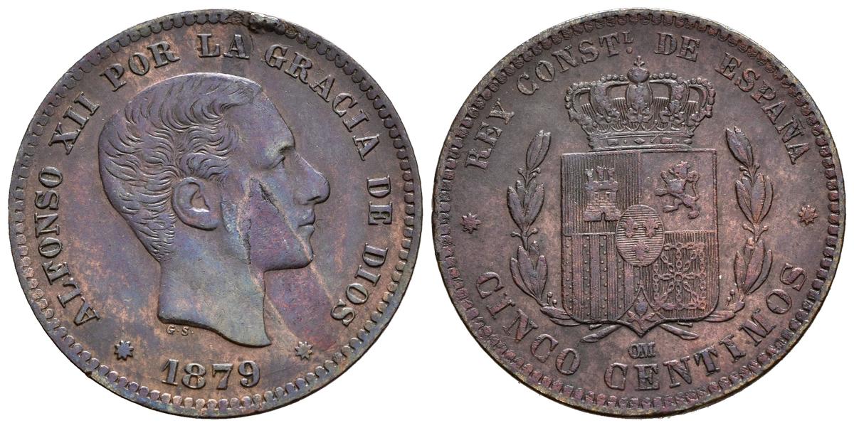 ALFONSO XII (1874-1885). 5 cents. (Ae. 4.93g/24mm). 1879. Barcelona OM. (Cal-2019-6). Good Very Fine.