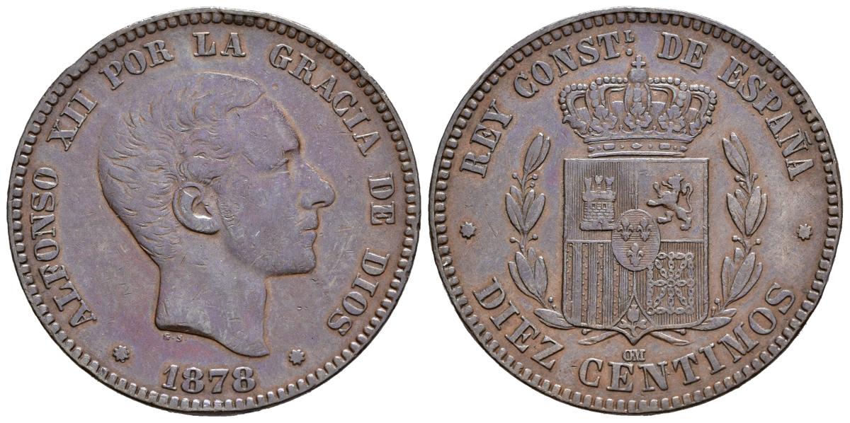 ALFONSO XII (1874-1885). 10 cents. (Ae. 10.06g/30mm). 1878. Barcelona OM. (Cal-2019-9). Good Very Fine.