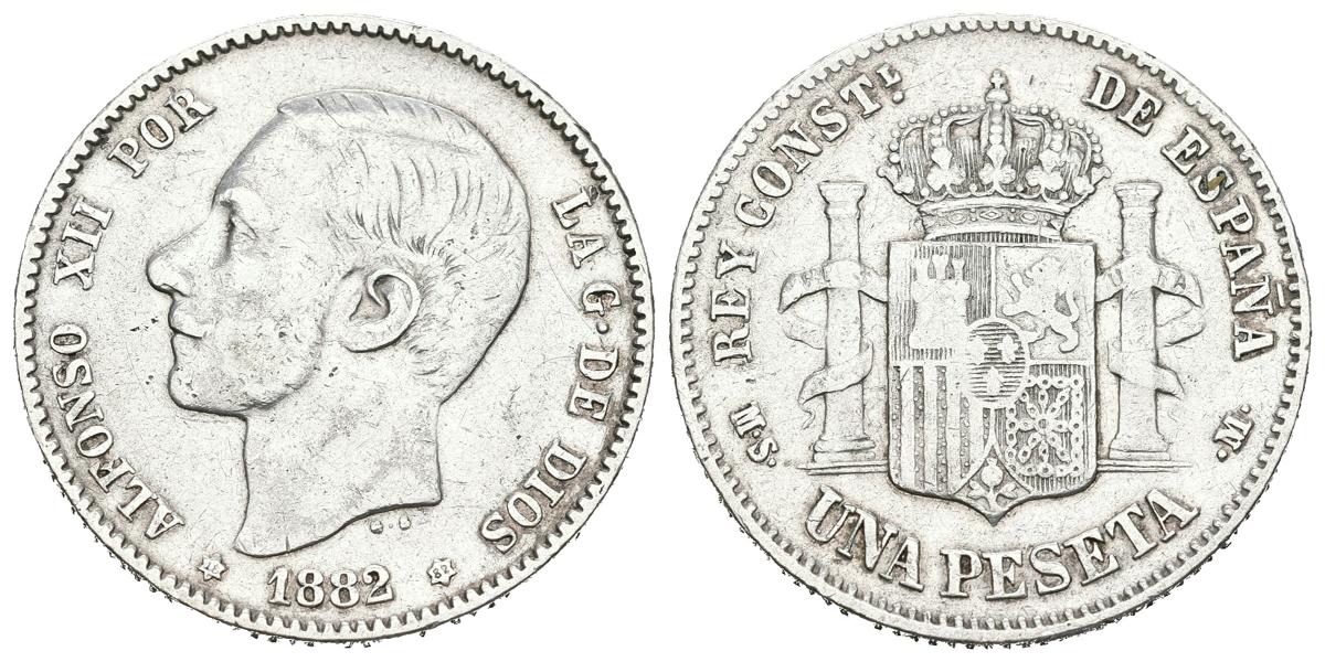 ALFONSO XII (1874-1885). 1 Peseta. (Ar. 4.90/23mm). 1882*18-82. MadridMSM. (Cal-2019-20). Good Fine. Limited.