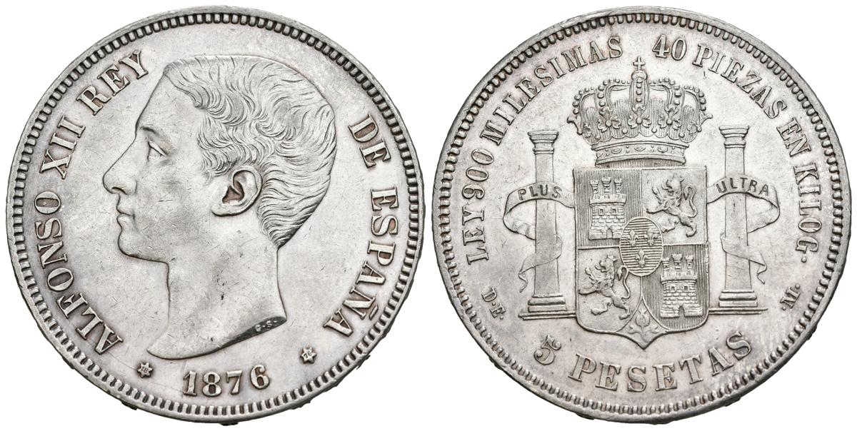 ALFONSO XII (1874-1885). 5 pesetas. (Ar. 24.72g/37mm). 1876 *18-76. Madrid DEM. (Cal-2019-37). Almost Extremely Fine. cleaned.