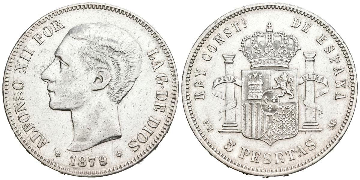 ALFONSO XII (1874-1885). 5 pesetas. (Ar. 24.86g/37mm). 1879 *18-79. Madrid EMM. (Cal-2019-42). Very Fine. cleaned.