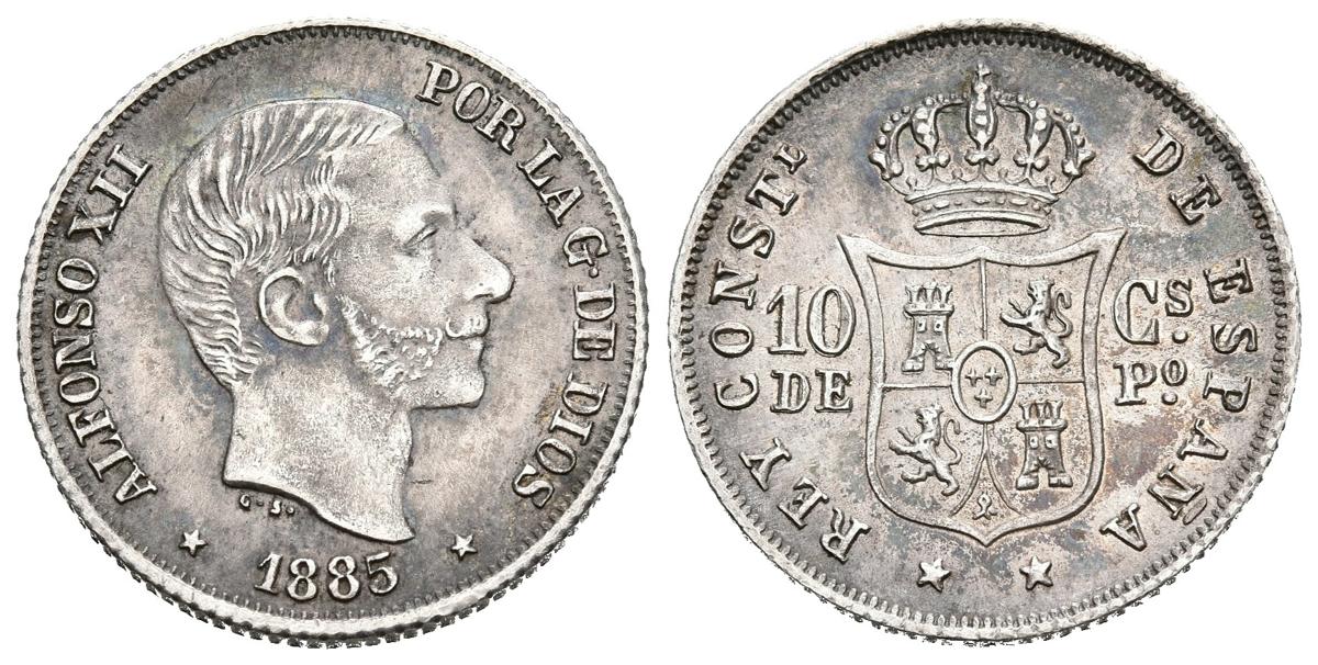 ALFONSO XII (1874-1885). 10 Cents (Ar. 2.59g/18mm). 1885. Manila. (Cal-2019-102). Almost Uncirculated. nice patina