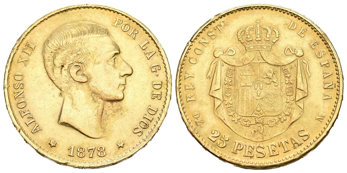 ALFONSO XII (1874-1885). 25 pesetas. (Au 7.94g/24mm). 1878 *18-78. Madrid DEM. (Cal-2019-70). Good Very Fine. Reproduction of jewelry of 833 thousandths.