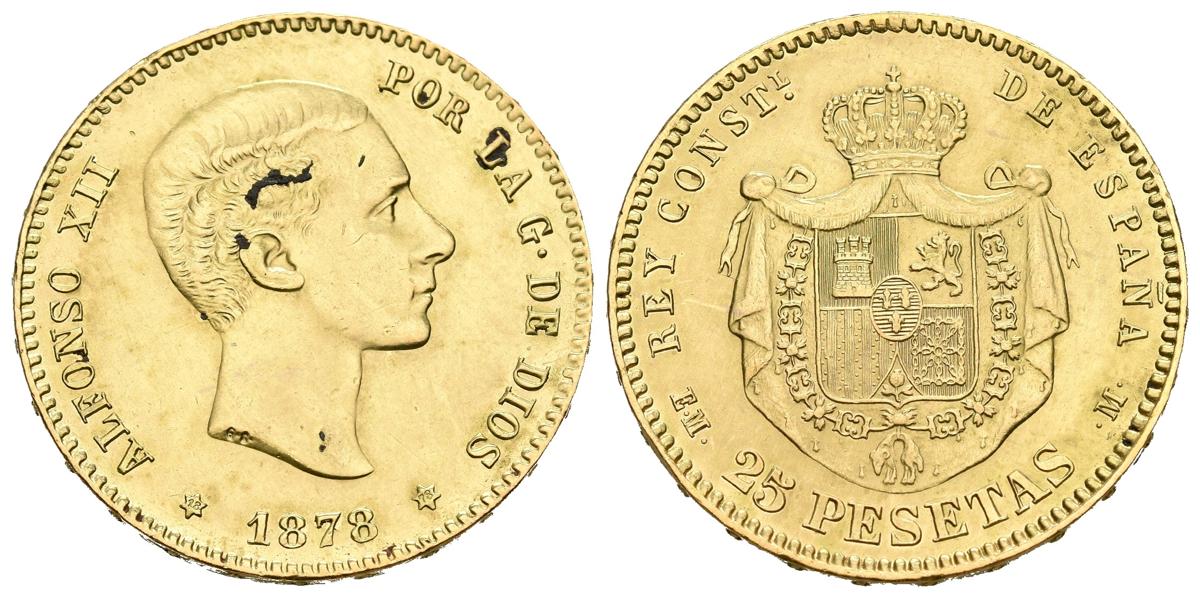 ALFONSO XII (1874-1885). 25 pesetas. (AU 8.05g/24mm). 1878 *18-78. Madrid EMM. (Cal-2019-71). Good Very Fine.