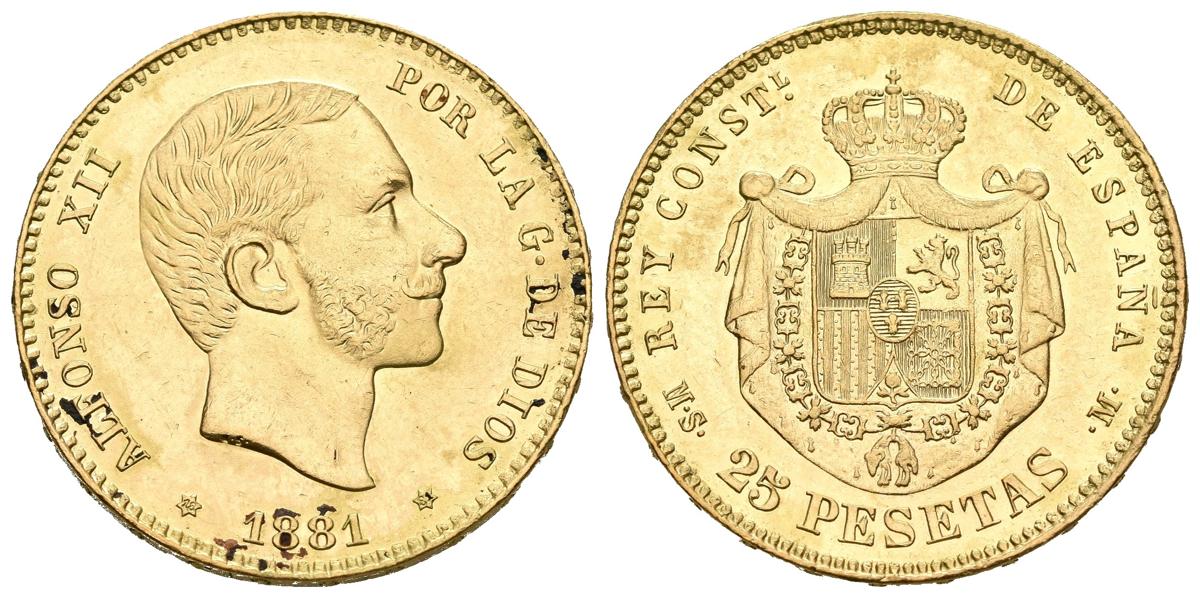 ALFONSO XII (1874-1885). 25 pesetas. (AU 8.05g/24mm). 1881 *18-81. MadridMSM. (Cal-2019-82). Good Very Fine.