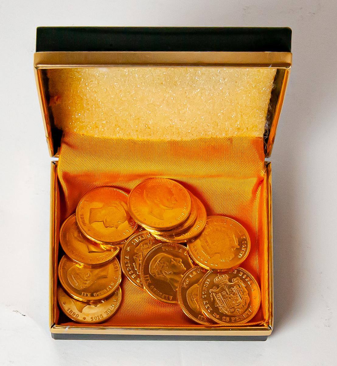 ALFONSO XII. Nice set made up of 13 gold deposits of 680 thousandths in the 25 Pesetas module and with an impossible date. High state of conservation in general. Total weight of the set 103.51g. TO EXAMINE.