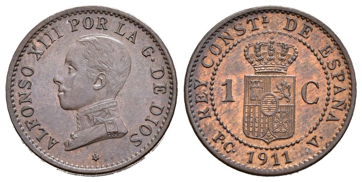 ALFONSO XIII (1885-1931). 1 Cent. (Ae. 1.01g/15mm). 1911 *1. Madrid PCV. (Cal-2019-3). Uncirculated. Beautiful shine.