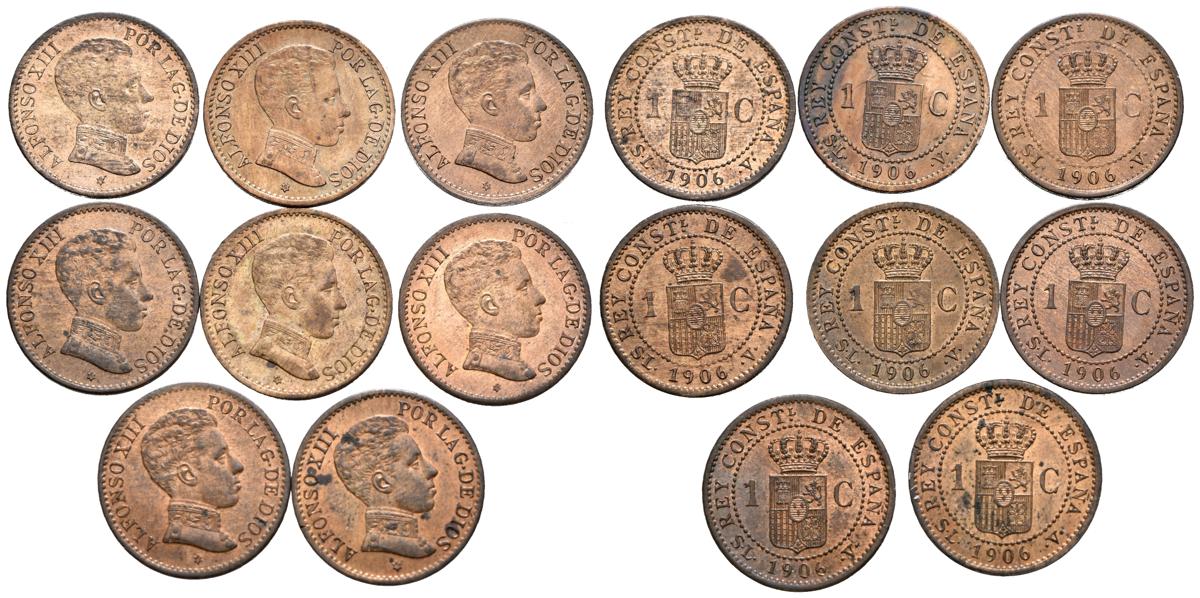 ALFONSO XIII (1885-1931). Set of 8 1 Cent coins from 1906 *6. Madrid SLV. All in Uncirculated state. TO EXAMINE.