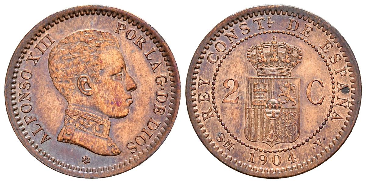 ALFONSO XIII (1885-1931). 2 cents. (Ae. 2.10g/20mm). 1904 *04. Madrid SMV. (Cal-2019-6). Uncirculated.
