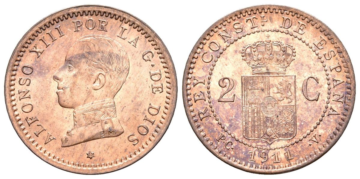 ALFONSO XIII (1885-1931). 1 Cent. (Ae. 2.02g/20mm). 1911 *11. Madrid PCV. (Cal-2019-13). Uncirculated. Original Luster . Nice specimen.