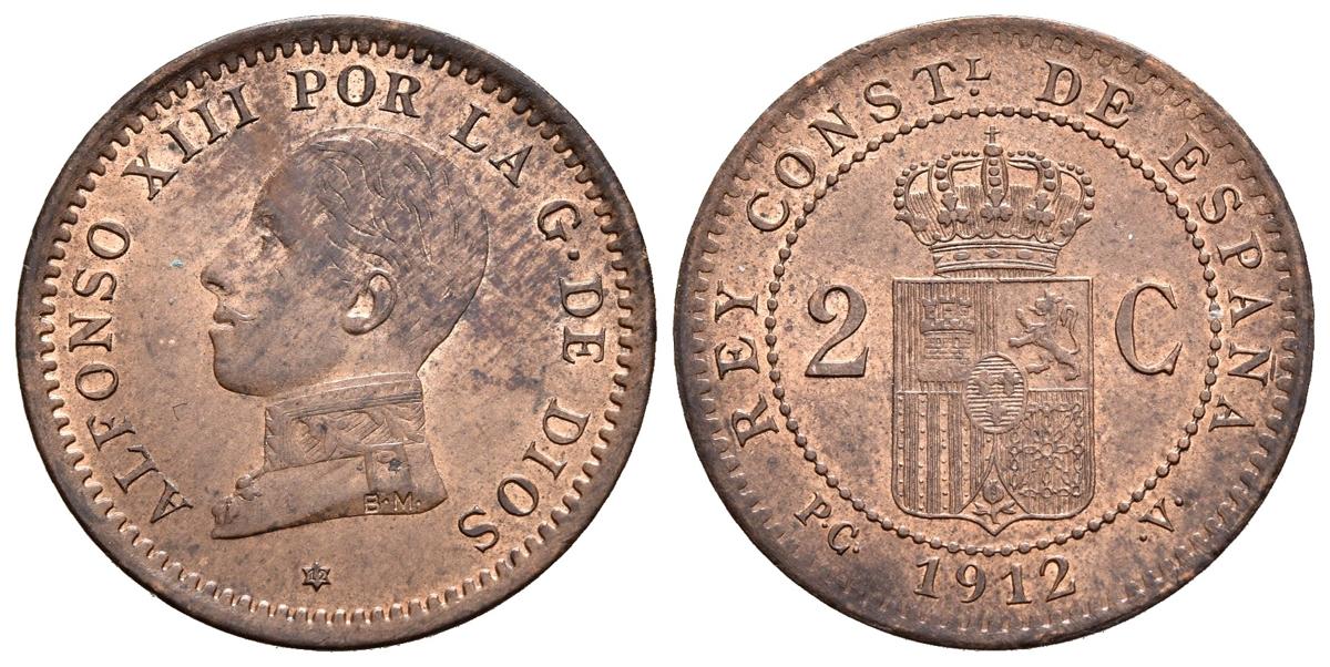 ALFONSO XIII (1885-1931). 2 cents. (Ae. 1.97g/20mm). 1912 *12. Madrid PCV. (Cal-2019-15). Uncirculated.