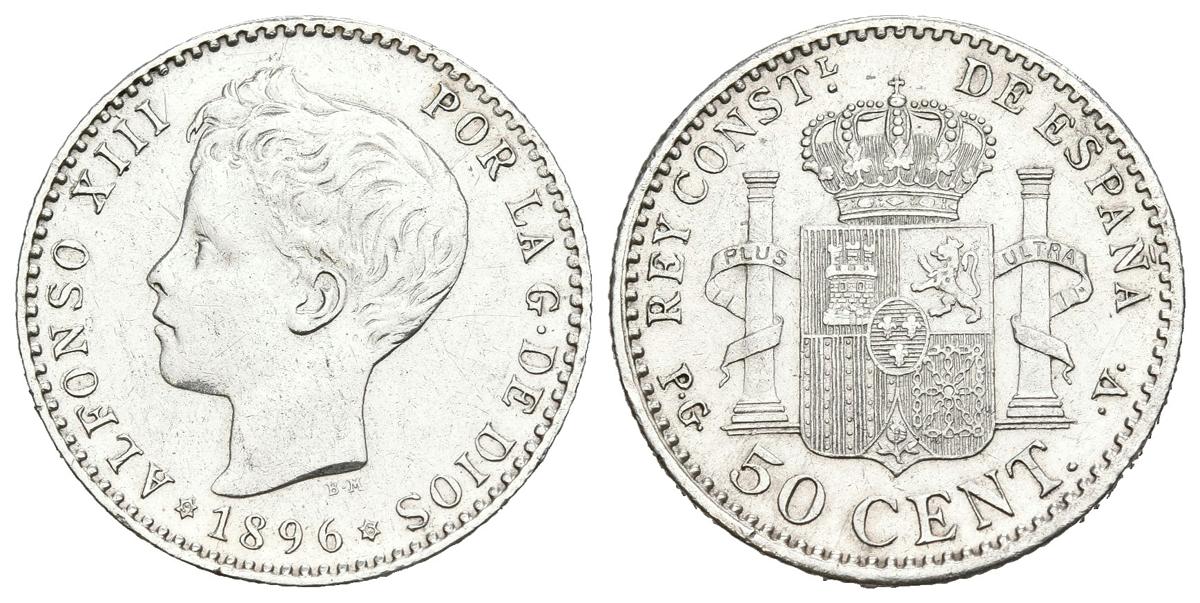 ALFONSO XIII (1885-1931). 50 cents. (Ar. 2.48g/18mm). 1896 *9-6. Madrid PGV. (Cal-2019-44). Almost Extremely Fine. cleaned.