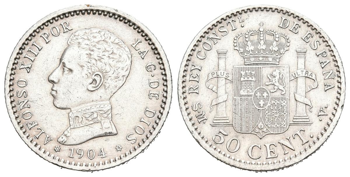 ALFONSO XIII (1885-1931). 50 cents. (Ar. 2.47g/18mm). 1904 *0-4. Madrid SMV (Cal-2019-46). Almost Extremely Fine