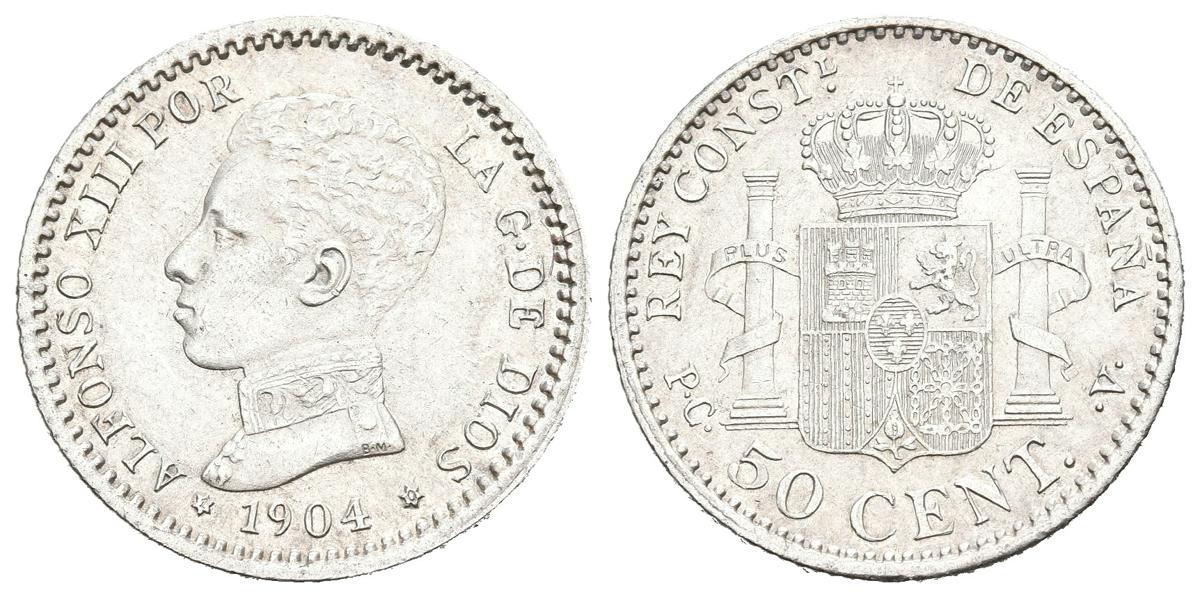 ALFONSO XIII (1885-1931). 50 cents. (Ar. 2.52g/18mm). 1904 *1-0. Madrid PCV (Cal-2019-47). Almost Extremely Fine.