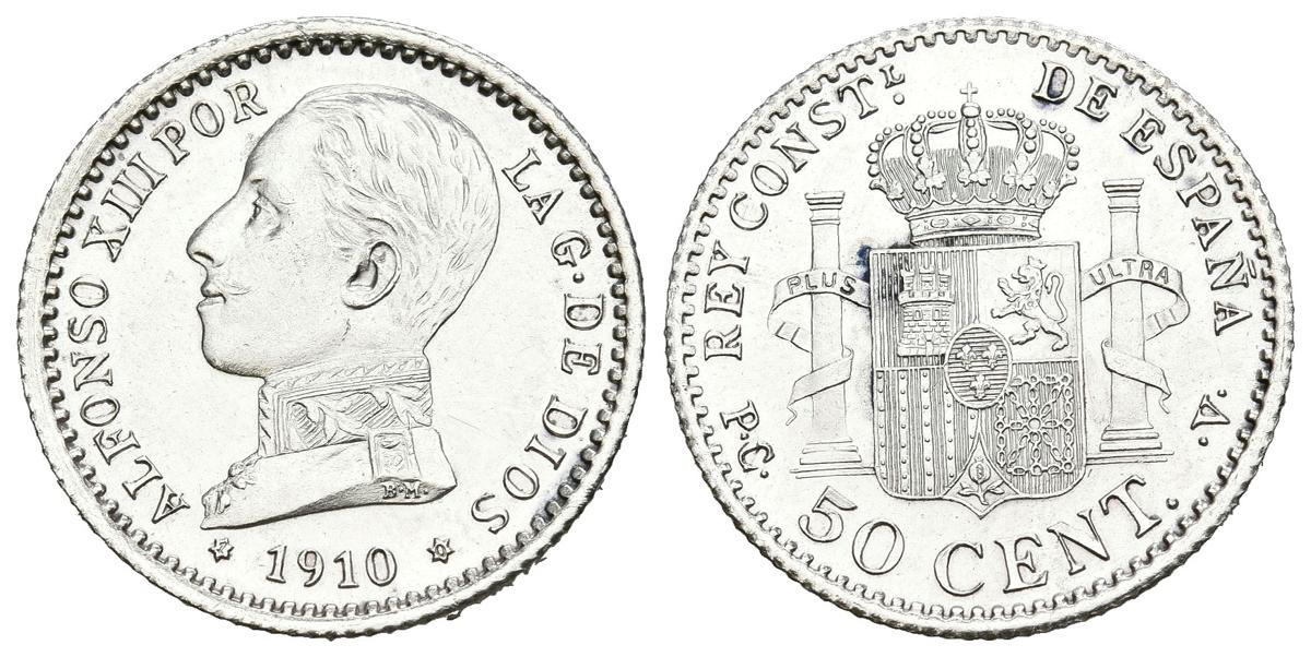 ALFONSO XIII (1885-1931). 50 cents. (Ar. 2.49g/18mm). 1910 *1-0. Madrid PCV (Cal-2019-48). Good Extremely Fine. cleaned