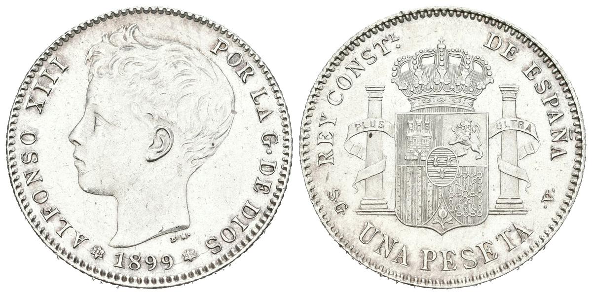 English ALFONSO XIII (1885-1931). 1 Peseta. (Ar. 5.03g/23mm). 1899 *18-99. Madrid SGV. (Cal-2019-57). Good Extremely Fine. Scratch.