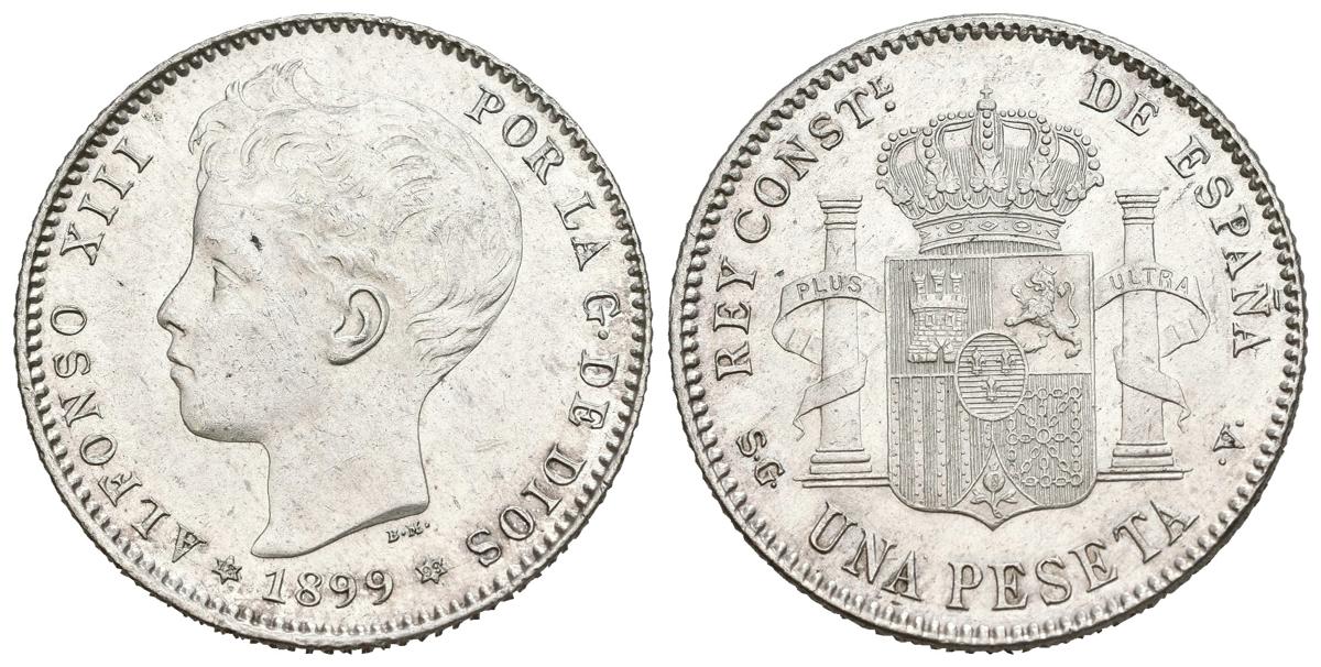 ALFONSO XIII (1885-1931). 1 Peseta. (Ar. 5.13g/23mm). 1899 *18-99. Madrid SGV. (Cal-2019-57). Uncirculated. original Luster