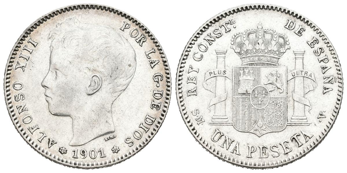 ALFONSO XIII (1885-1931). 1 Peseta. (Ar. 4.97g/23mm). 1901 *19-01. Madrid SMV. (Cal-2019-60). Good Very Fine.