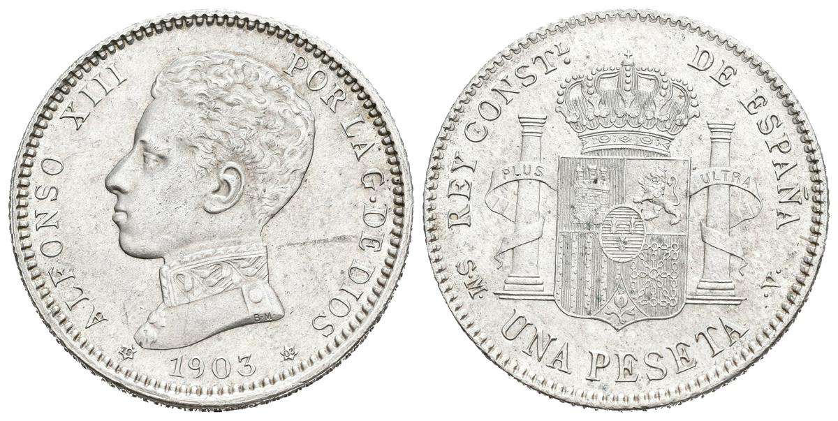 ALFONSO XIII (1885-1931). 1 peseta. (Ar. 4.90g /23mm). 1903 * 19-03. Madrid SMV. (Cal-2019-67). Extremely Fine. original Luster