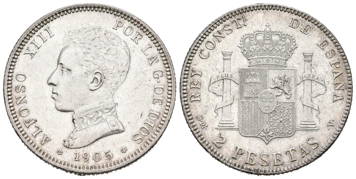 ALFONSO XIII (1885-1931). 2 pesetas. (Ar. 9.94g/27mm). 1905 *19-05. Madrid SMV. (Cal-2019-88). Extremely Fine. Remnants of original shine.