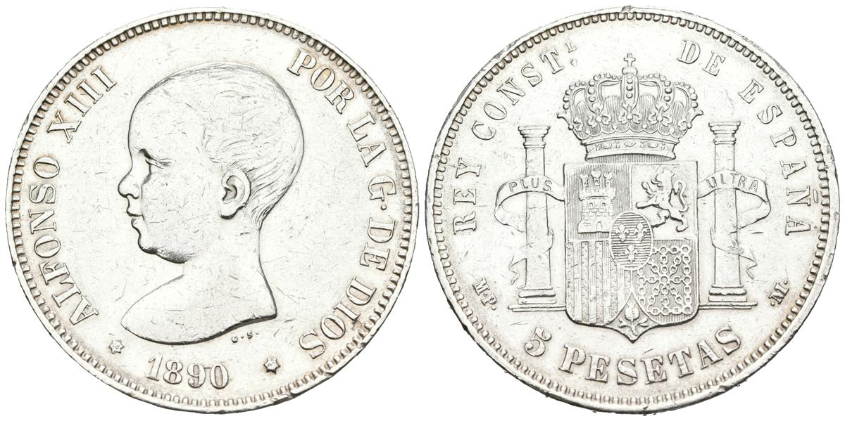 ALFONSO XIII (1885-1931). 5 pesetas. (Ar. 24.95g/37mm). 1890 *18-90. Madrid MPM. (Cal-2019-95). Very Fine.