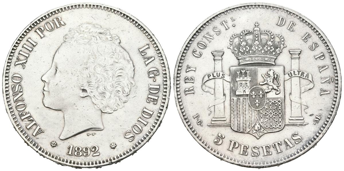 ALFONSO XIII (1885-1931). 5 pesetas. (Ar. 25.05g/37mm). 1892 *18-92. Madrid PGM. (Cal-2019-100). Good Very Fine.
