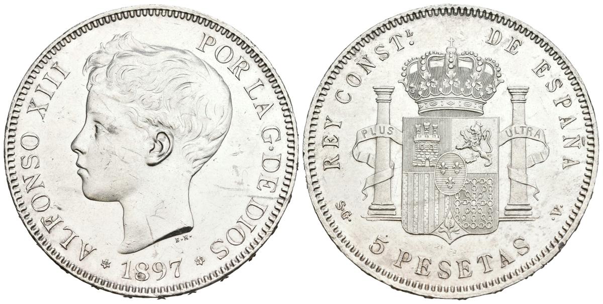 ALFONSO XIII (1885-1931). 5 pesetas. (Ar. 24.93g/37mm). 1897 *18-97. Madrid SGV. (Cal-2019-107). Good Extremely Fine. Little marks. Original Luster .