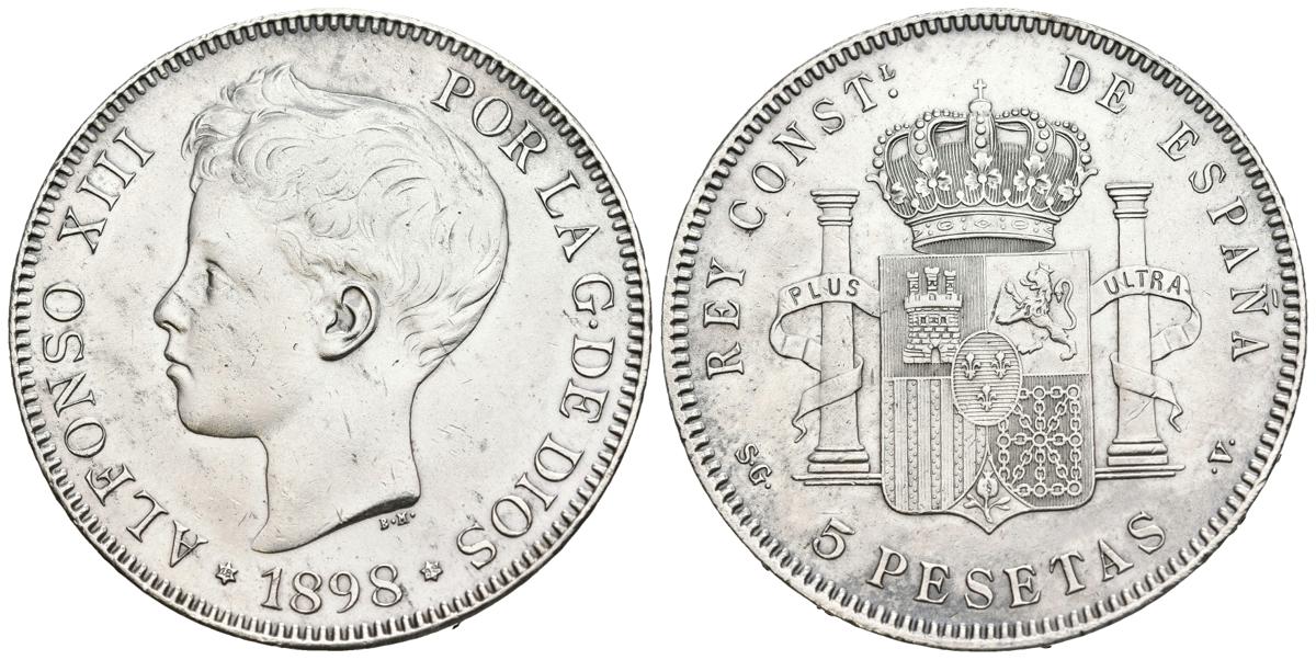 ALFONSO XIII (1885-1931). 5 pesetas. (Ar. 25.10g/37mm). 1898 *18-98. Madrid SGV. (Cal-2019-109). Almost Extremely Fine. cleaned. Little marks.