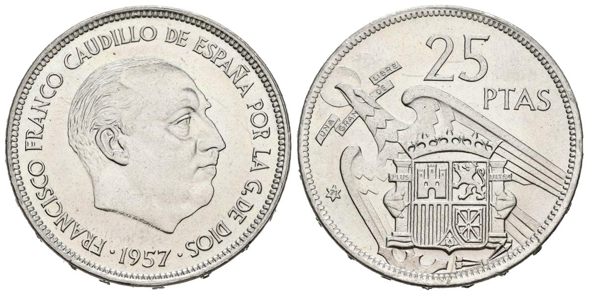 SPANISH STATE (1939-1975). 25 pesetas. (Ni. 8.31g/27mm). 1957 *19-71. Madrid. (Cal-2019-126). Uncirculated.