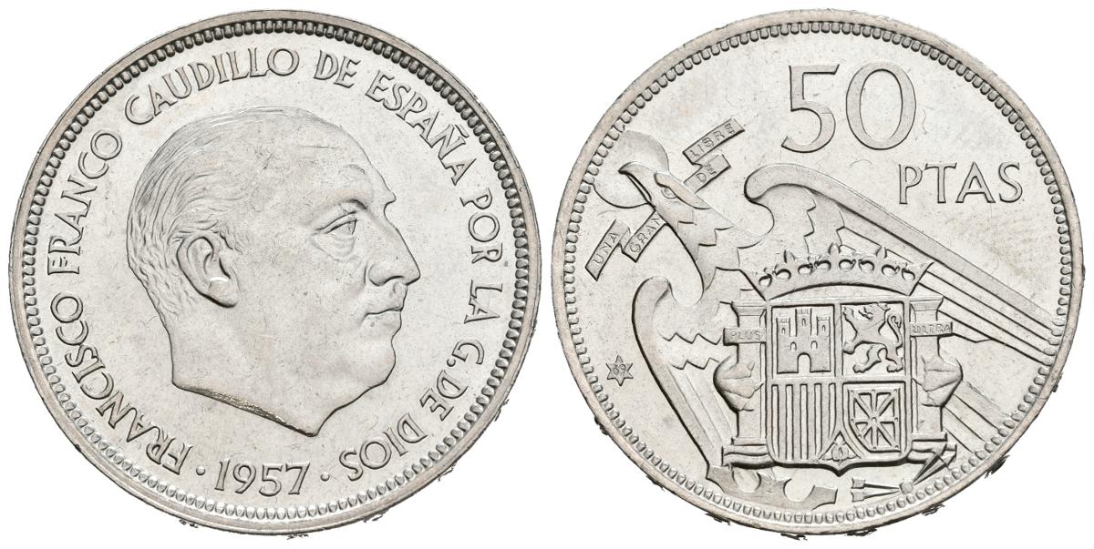 SPANISH STATE (1939-1975). 50 pesetas. (No. 12.64g/30mm). 1957 *69. Madrid. (Cal-2019-138). Uncirculated. Strange.