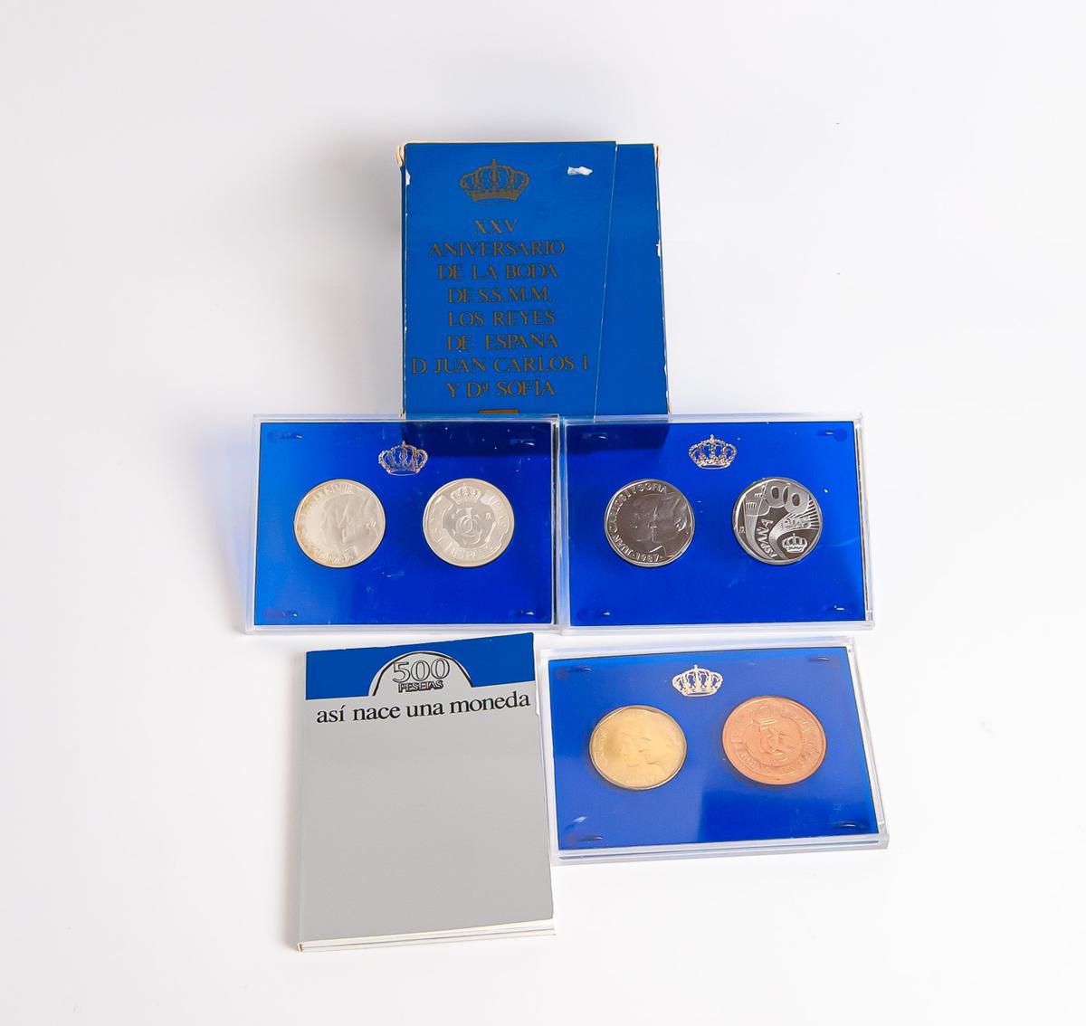 English JUAN CARLOS I (1975-2014). 500 pesetas. FNMT tests. Commemorative case XXV Anniversary of the Wedding of the Kings Juan Carlos I and Sofía. The set includes 6 coins and a booklet "This is how a coin is born". 1987. Uncirculated.