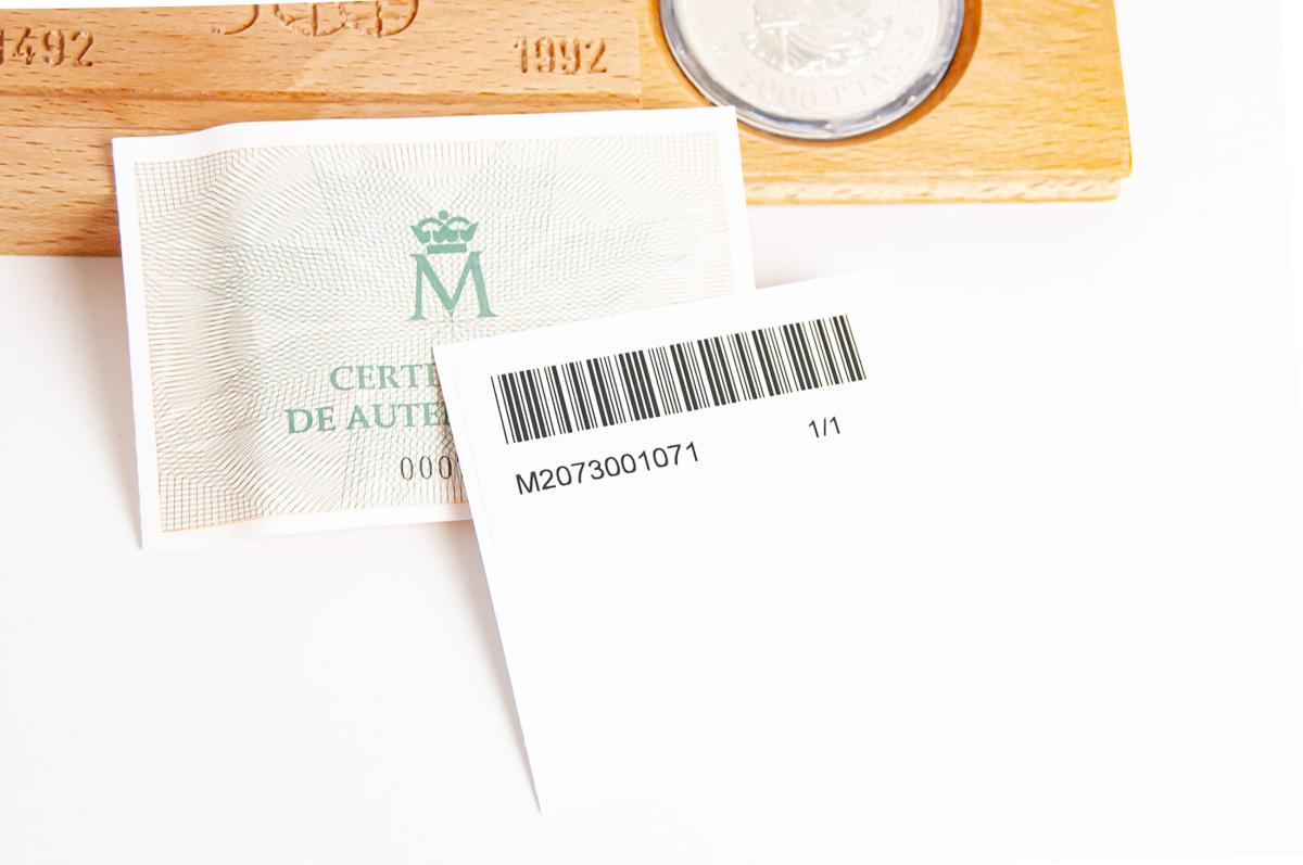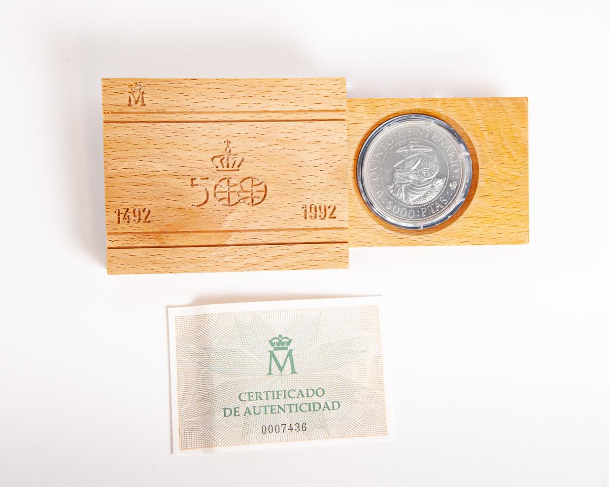 English JUAN CARLOS I (1975-2014). 5000 Pesetas (Ar. 54.00g/40mm). Fifth Centennial Series. Series I. 1989. FDC. Presented in official box and with certificate of authenticity.