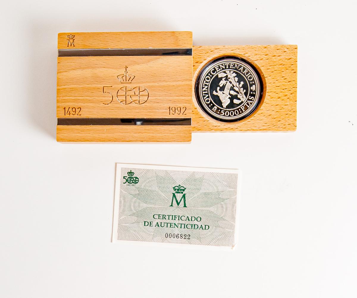 English JUAN CARLOS I (1975-2014). 5000 Pesetas. (Ar. 54.00g/40mm). Fifth Centennial Series. Series II. 1990. PROOF. Presented in official box and with certificate of authenticity.