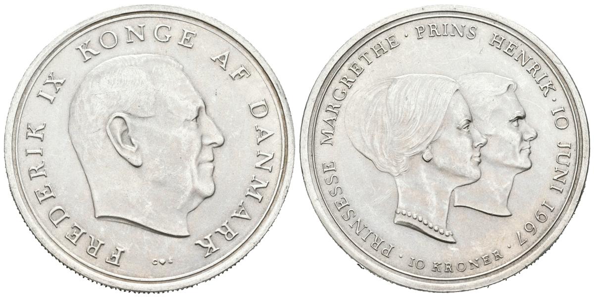 DENMARK. 10 Crowns. (Ar. 20.54g/36mm). 1967. Wedding of Princess Margaret. (Km#856). Extremely Fine.