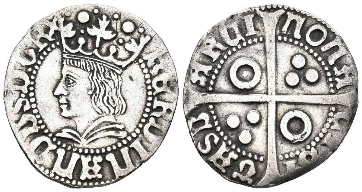 FERDINAND THE CATHOLIC (1479-1516). 1 Croat (Ar. 3.14g/24mm). S/D Barcelona. (Cal-2019-53). Roel in first and cuarto quarters. Good Very Fine. cleaned.