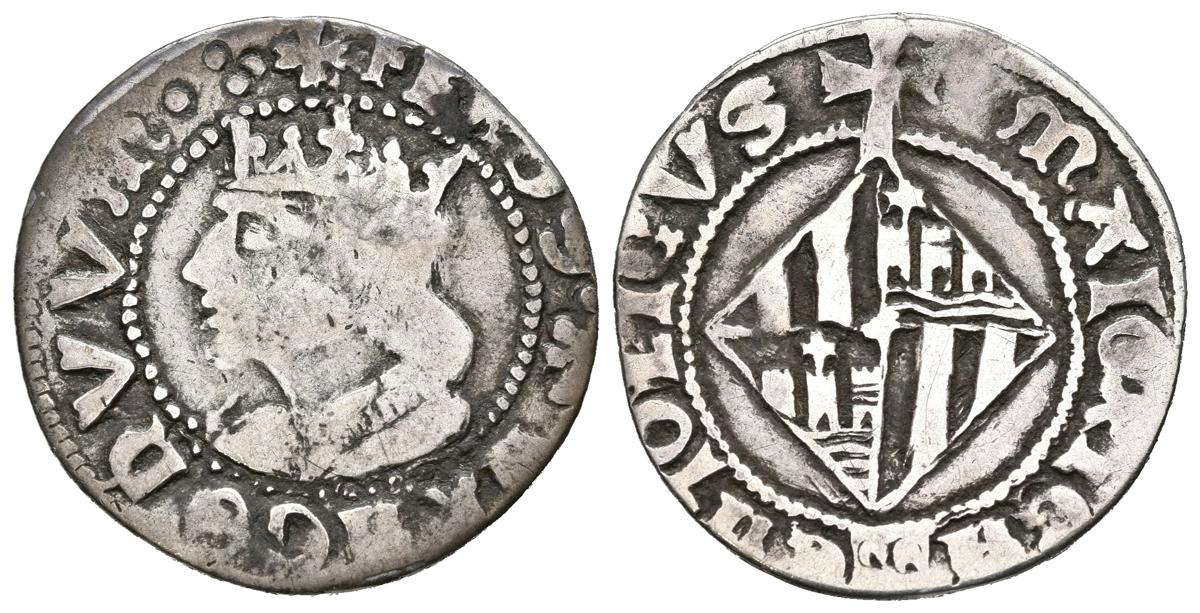 FERDINAND THE CATHOLIC (1479-1516). 1 Real (Ar. 2.09g/21mm). S/D (1508-1516). Majorca. (Cal-2019-62). Gothic letters and R. Good Fine. Limited.