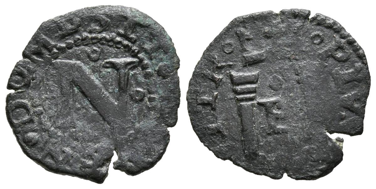 CARLOS I (1516-1556). horned. (See. 0.97g/17mm). Pamplona. (Cal-2019-43). Very Fine.