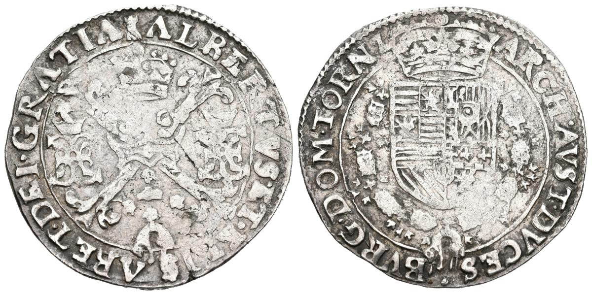 ALBERT AND ISABEL (1598-1621). 1/4 Patagonian. (Ar. 7.04g / 30mm). S/D. Tournai. (Vincent 273). Very Fine.
