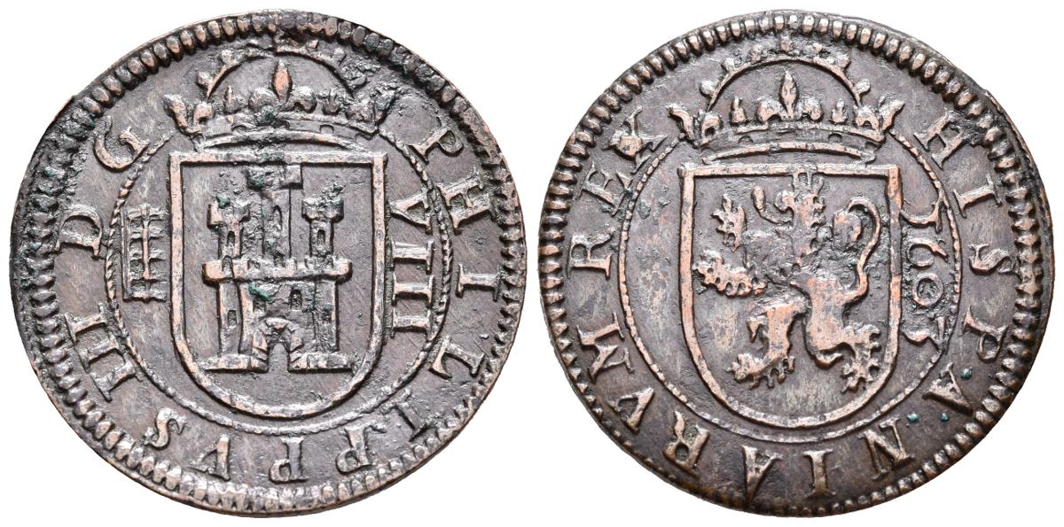 PHILIP III (1598-1621). 4 Marvels. (Ae. 5.71g/28mm). 1603. Segovia. (Cal-2019-324). Very Fine.
