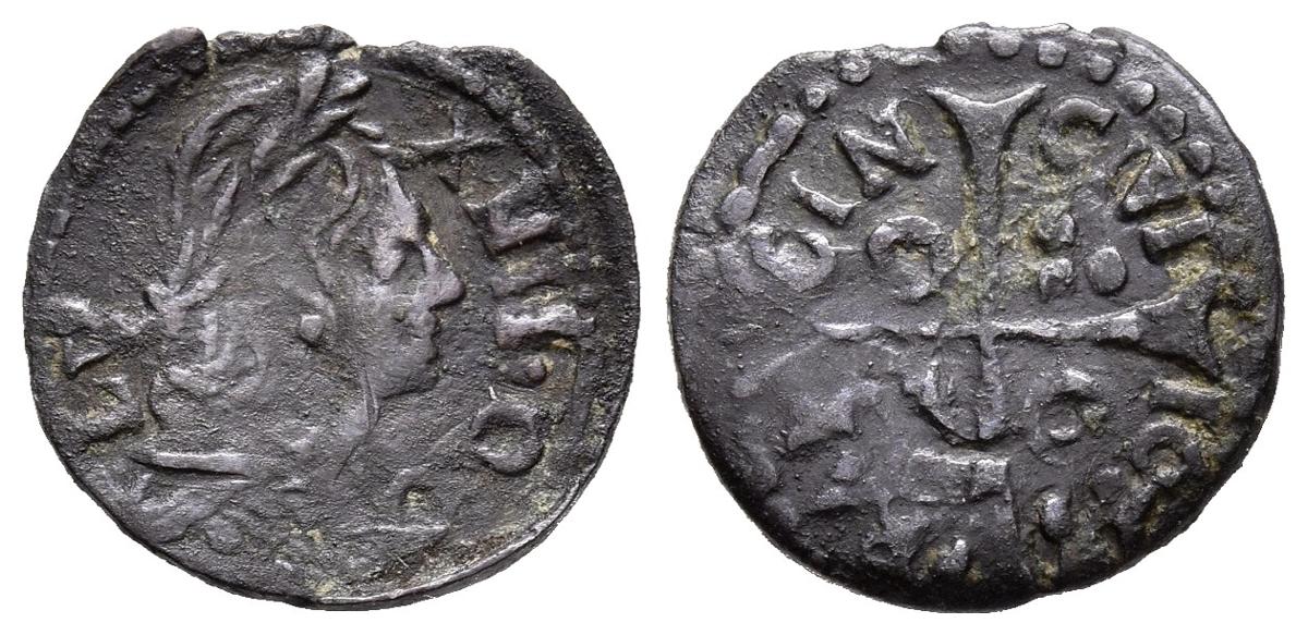 WAR OF THE REAPERS (1640-1652). Diner (Ae. 0.75g/13mm). 1643. Barcelona. Bust of Louis XIII in the name of Louis XIV. (Cal-2019-28). Good Fine.