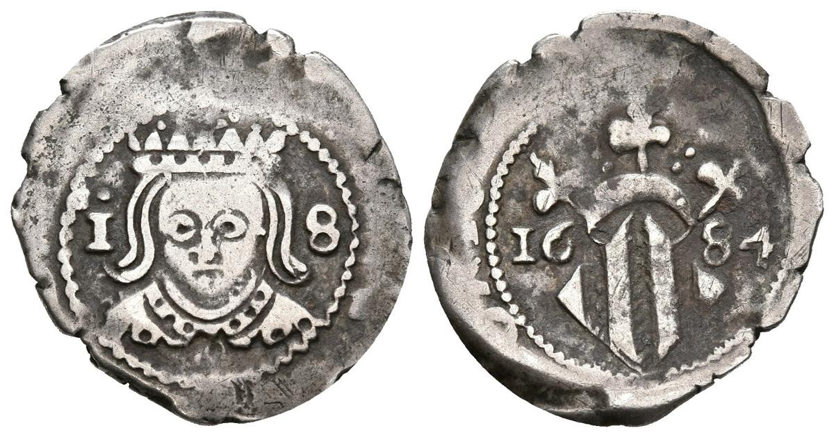 CARLOS II (1665-1700). 1 Divuitè (Ar. 1.89g/17mm). 1684. Valencia. (Cal-2019-329). Almost Very Fine.