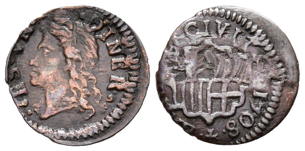 CARLOS III, the Pretender (1701-1714). Diner (Ae. 0.63g / 14mm). 1708. Barcelona. (Cal-2019-1). Good Very Fine/ Very Fine.