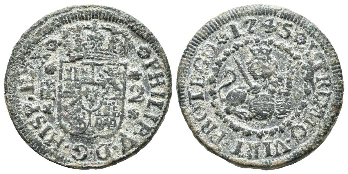 English PHILIP V (1700-1746). 2 Marvels. (Ae. 3.55g/21mm). 1745. Segovia. (Cal-2019-74). Very Fine.