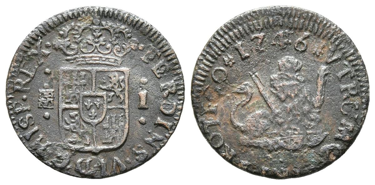 FERDINAND VI (1746-1759). 1 Maravedi. (Ae. 1.04g/16mm). 1746. Segovia. (Cal-2019-18). Almost Very Fine.