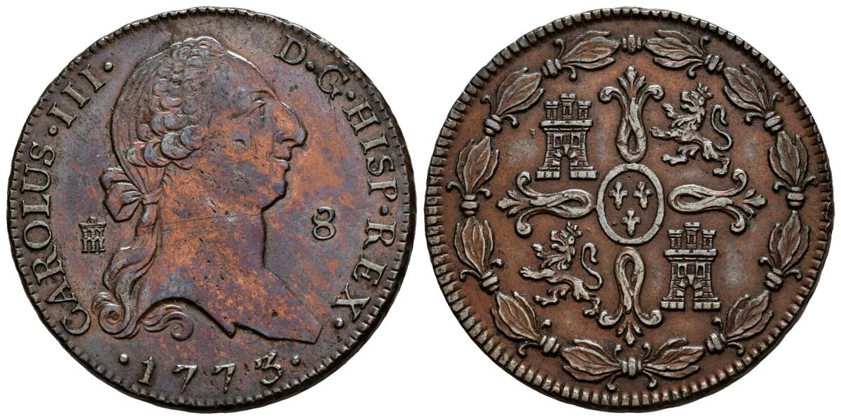 CARLOS III (1759-1788). 8 Wonders. (Ae. 11.79g/31mm). 1773. Segovia (Cal-2019-70). Extremely Fine. Insignificant scratch on the front. nice tone Spectacular specimen, rare like this.