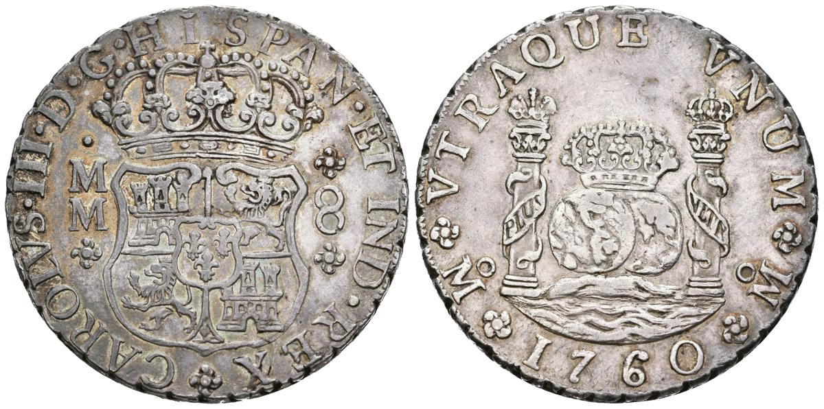 English CARLOS III (1759-1788). 8 Reales (Ar. 27.17g/39mm). 1760. Mexico MM. (Cal-2019-1073). Good Very Fine. nice patina