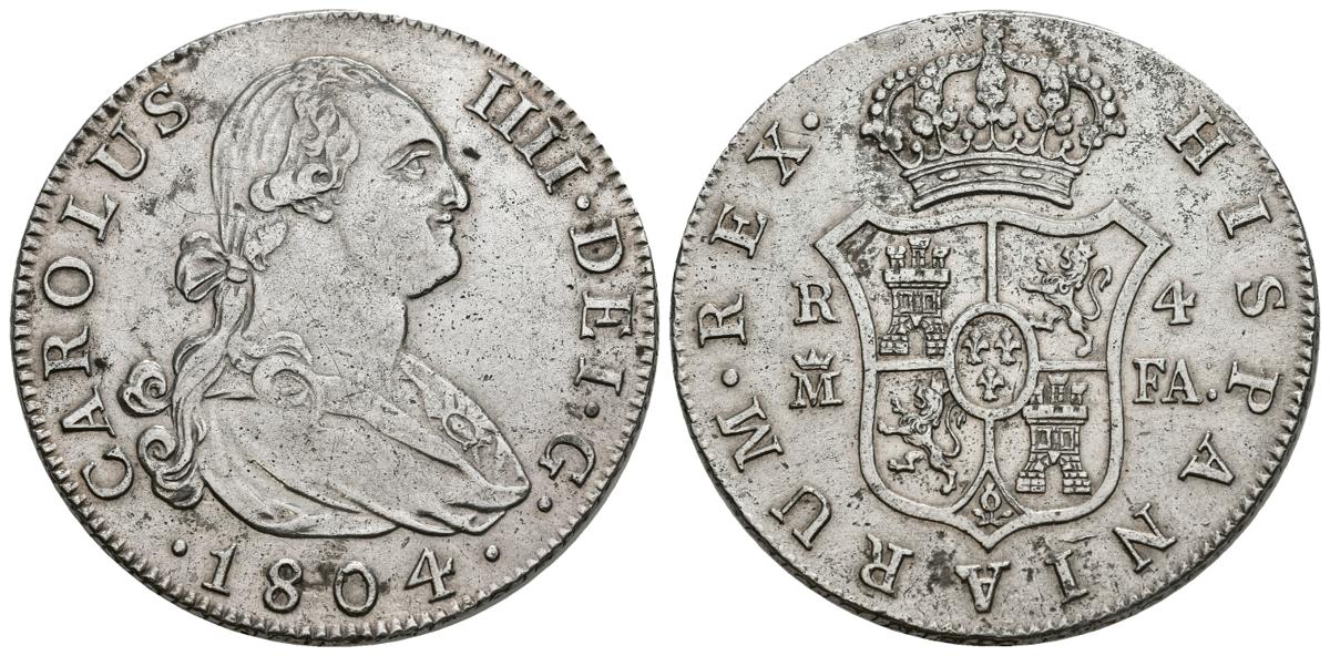 CARLOS IV (1788-1808). 4 Reales. (Ar. 13.47g/33mm). 1804. Madrid FA. (Cal-2019-785). Good Very Fine.