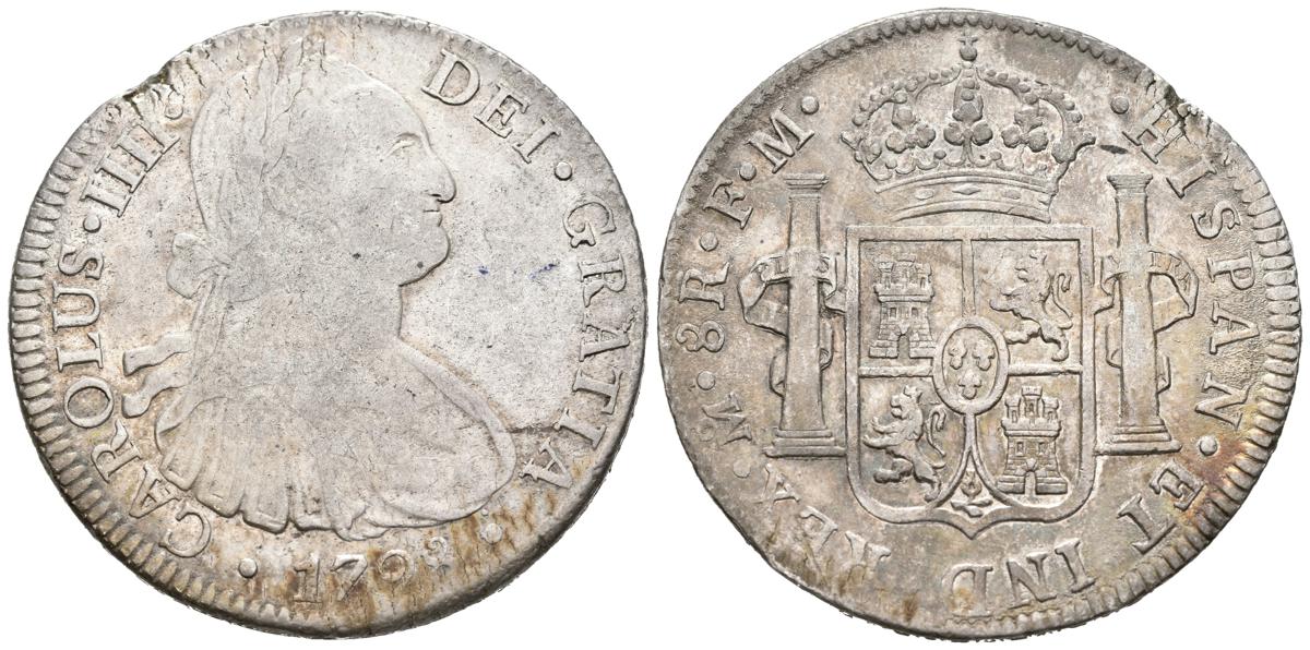 English CARLOS IV (1788-1808). 8 Reales. (Ar. 26.85g/40mm). 1798. Mexico FM. (Cal-2019-961). Almost Very Fine/ Very Fine.