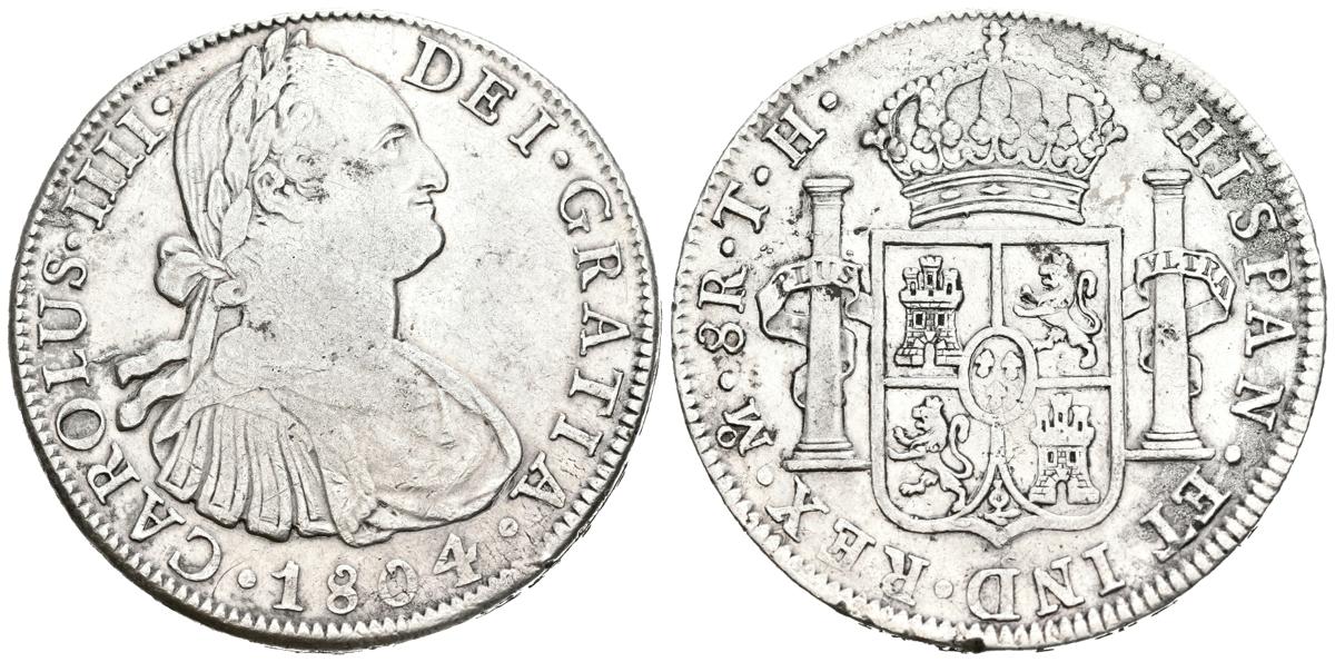 English CARLOS IV (1788-1808). 8 Reales. (Ar. 26.80g/40mm). 1804. Mexico TH. (Cal-2019-980). Very Fine.