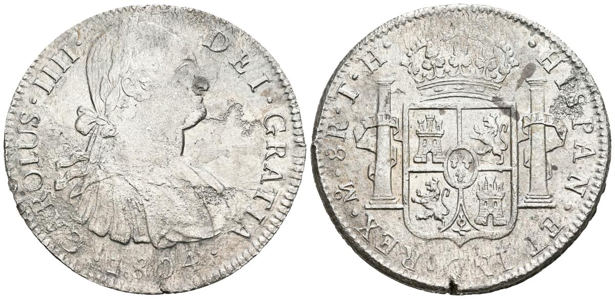 CARLOS IV (1788-1808). 8 Reales. (Ar. 25.49g/40mm). 1804. Mexico TH. (Cal-2019-980). Almost Very Fine. Cleaned oxidations.